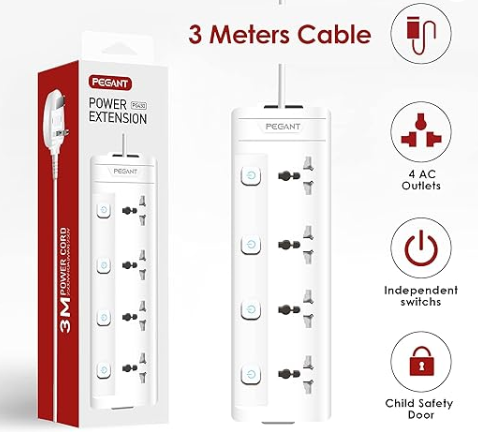 PEGANT 4 Way 3M Power Extension Cord 4 Universal Outlets Electrical Strip